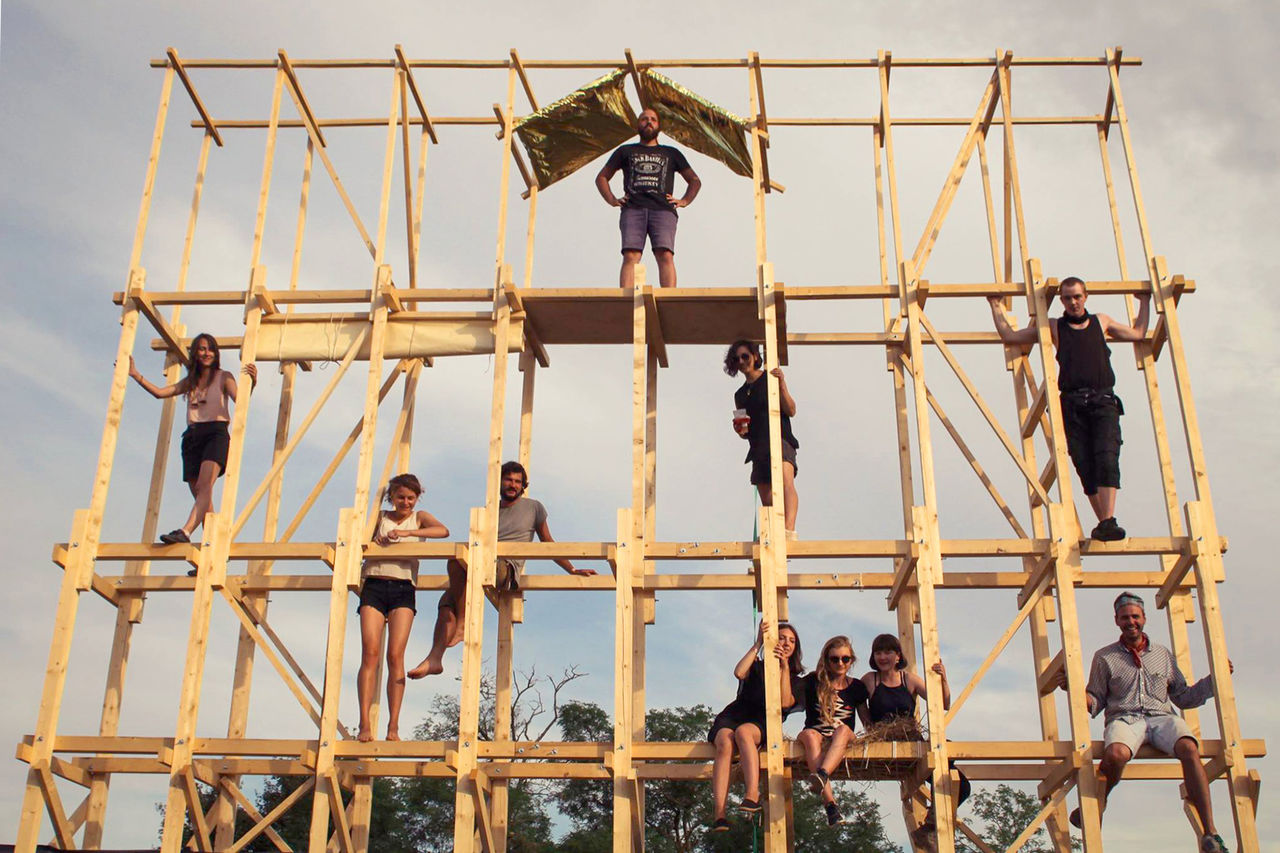 International workshop of construction in wood. Hungary. Project "Thread: uniting wall".