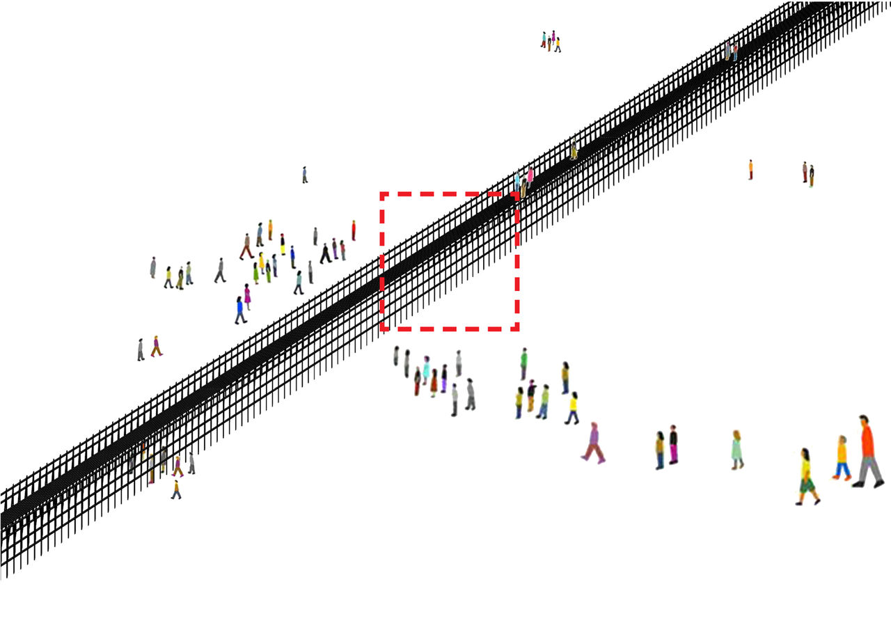 In the world of communication and global exchange of cultures, walls should unite people and not divide them. As such this project is a new kind of wall - it attracts rather than separates. It questions physical borders and proposes transforming the typology of a wall from a space-divider into a functional infrastructural space itself which can provide shelter as well as communal, commercial and cultural activities.