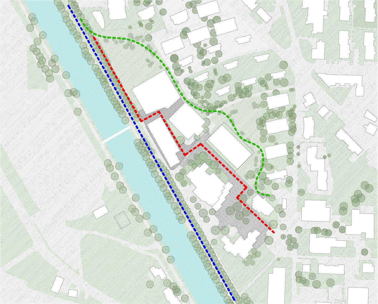 As a result of the urban planning analysis, we have identified two areas of the site: an “urban cluster” and a green “buffer”. “Urban cluster” consists of the existing school campus and adjacent sports and multipurpose halls. “Buffer” zone has great potential for development into a new green and ecological public space, but currently lacks clarity of use, greenery, and is filled with outbuildings.